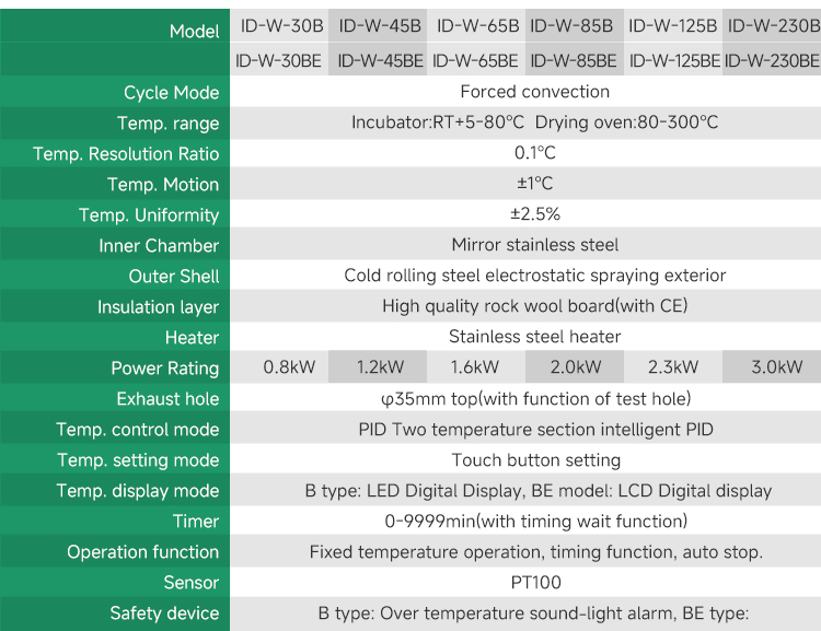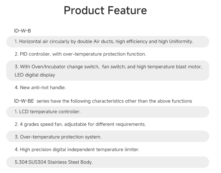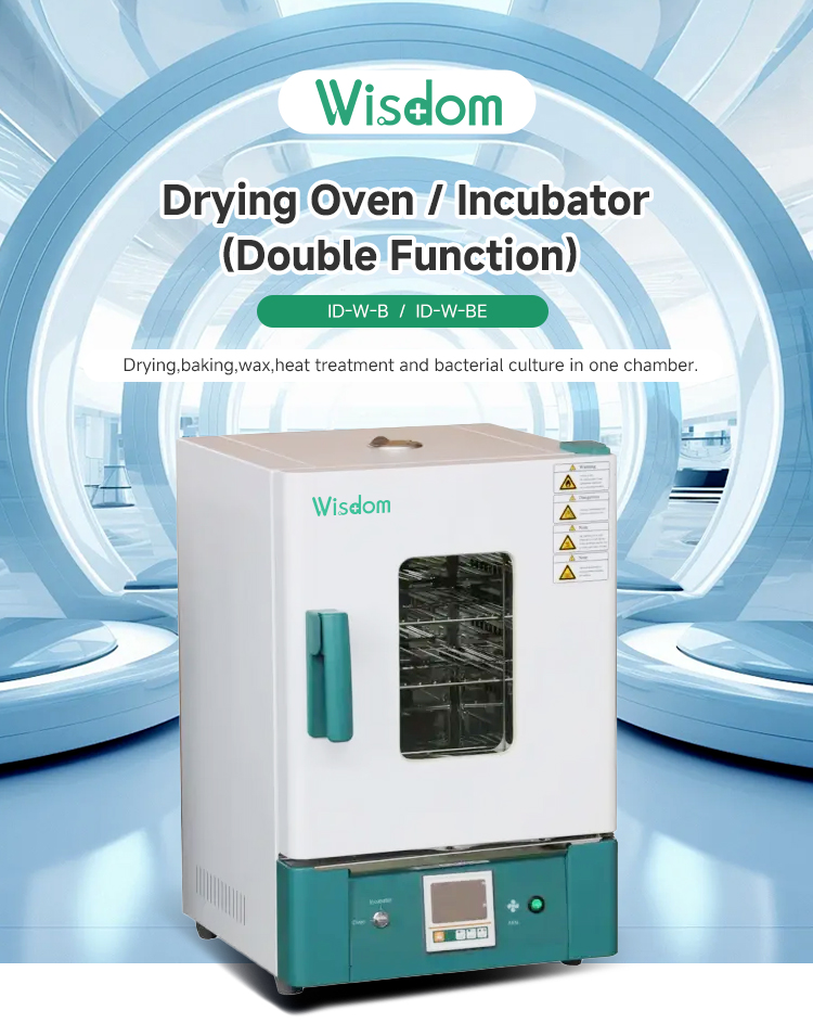 The Wisdom Scientific IR-W-B/BE Series is a high-performance Double-Function Drying Oven and Incubator designed for drying, baking, heat treatment, and bacterial culture within a single chamber. It features a horizontal double air duct system for high efficiency and uniformity, managed by a PID controller with over-temperature protection. The series includes a specialized Oven/Incubator change switch and an anti-hot handle. Advanced BE models offer an LCD display, a 4-grade adjustable speed fan, and a SUS304 stainless steel body for premium durability and precise control in research and industrial laboratories.